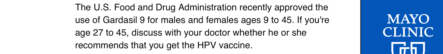 No. We all know that soon there will be two shots on the annual adult vaccine schedule. Then three — don’t forget RSV! — then four, then five, then seventy-two. Every Tom, Dick, and Harry in America needs an HPV shot because tomorrow he might decide to become Loretta. He wouldn’t want to get cancer in his cervix. You think I’m making that up? From the Mayo Clinic website: