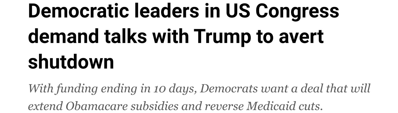 Trump said “no deal,” and told Republicans to just ignore them. So Democrats fought harder, insisting that President Trump at least negotiate with them. Al Jazeera, five days ago: