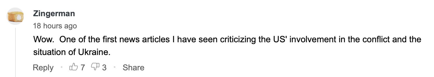 🚀 Watch out on deck! The narrative boom is swinging around. Newsweek ran an op-ed yesterday with the unintentionally-hilarious headline, get this: “We Can No Longer Hide the Truth About the Russia-Ukraine War.”