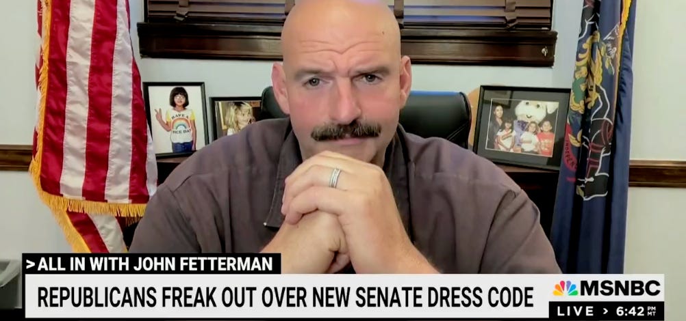 Anyway, U.S. Senator John Fetterman responded on MSNBC to Republicans “freaking out” over the new non-dress code. It was quintessential Fetterman: