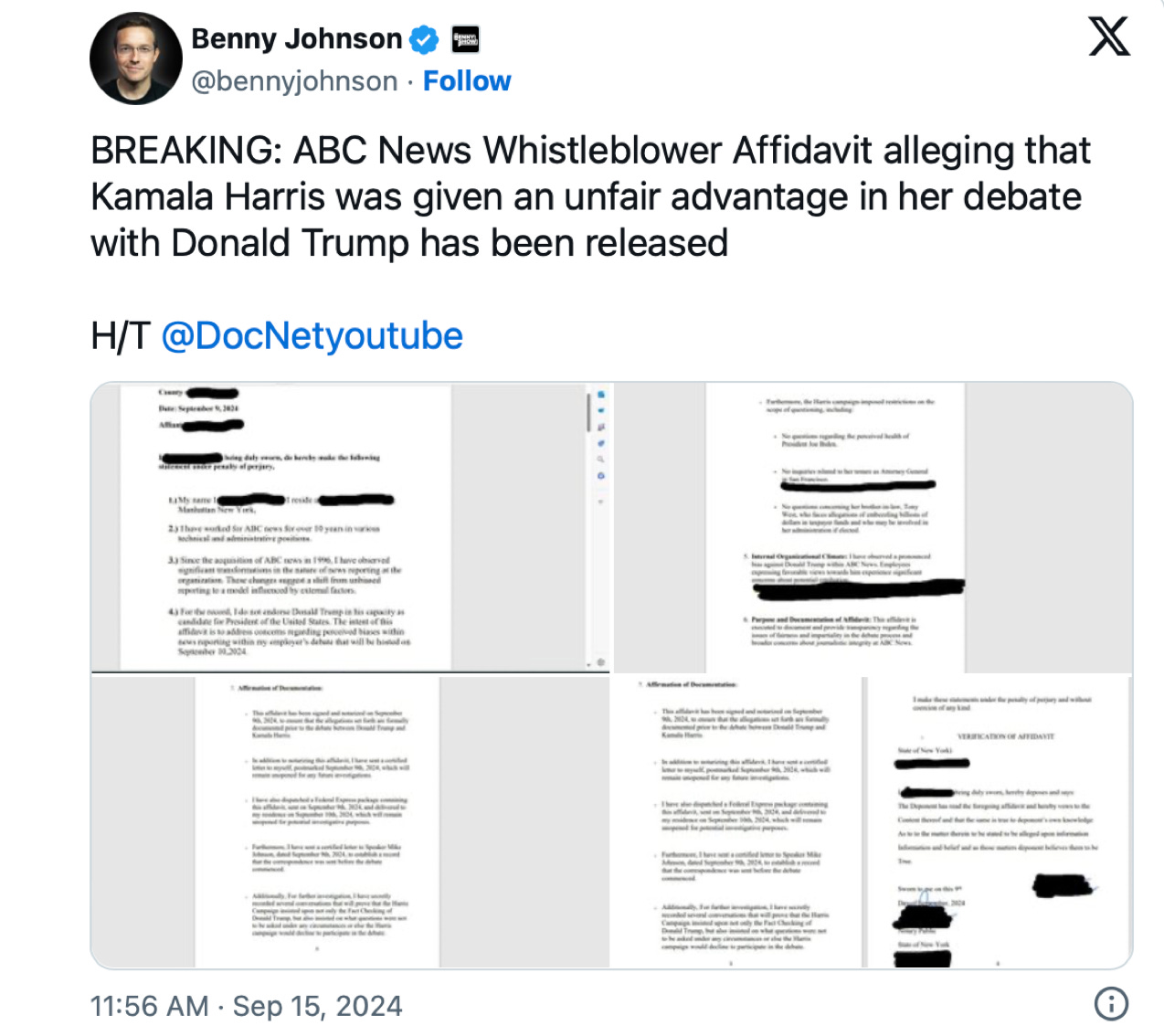 According to Times Now, neither ABC nor the Harris campaign have responded to this credible affidavit’s claims. With the new attempted assassination news, this story is designed to disappear in the fog like so many others have. But we don’t need to let that happen.