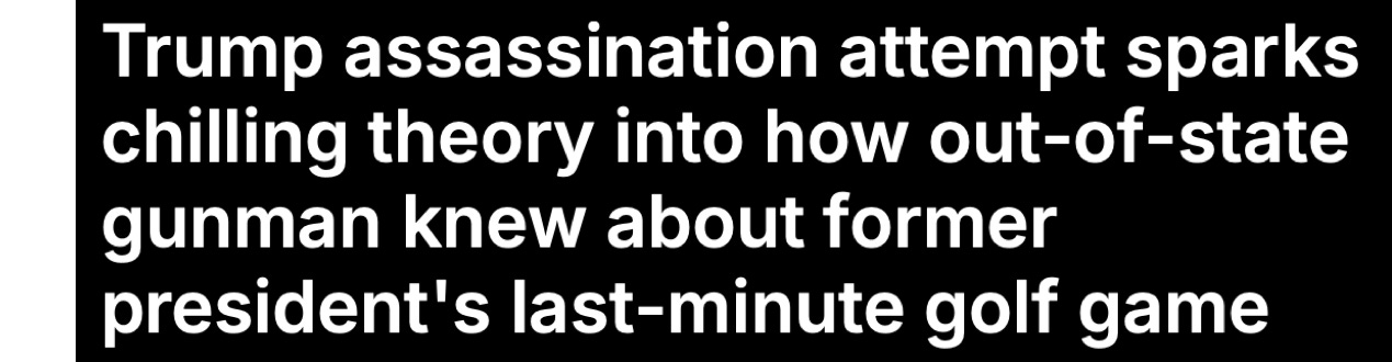 🔥🔥 One thing we’ve learned throughout the pandemic is that the media always rushes out a distracting violent catastrophe as soon as any embarrassing news threatens to break. So as soon as I heard the news about Routh’s arrest, I wondered whether there was some other story they were trying to obliterate with a second assassination story.