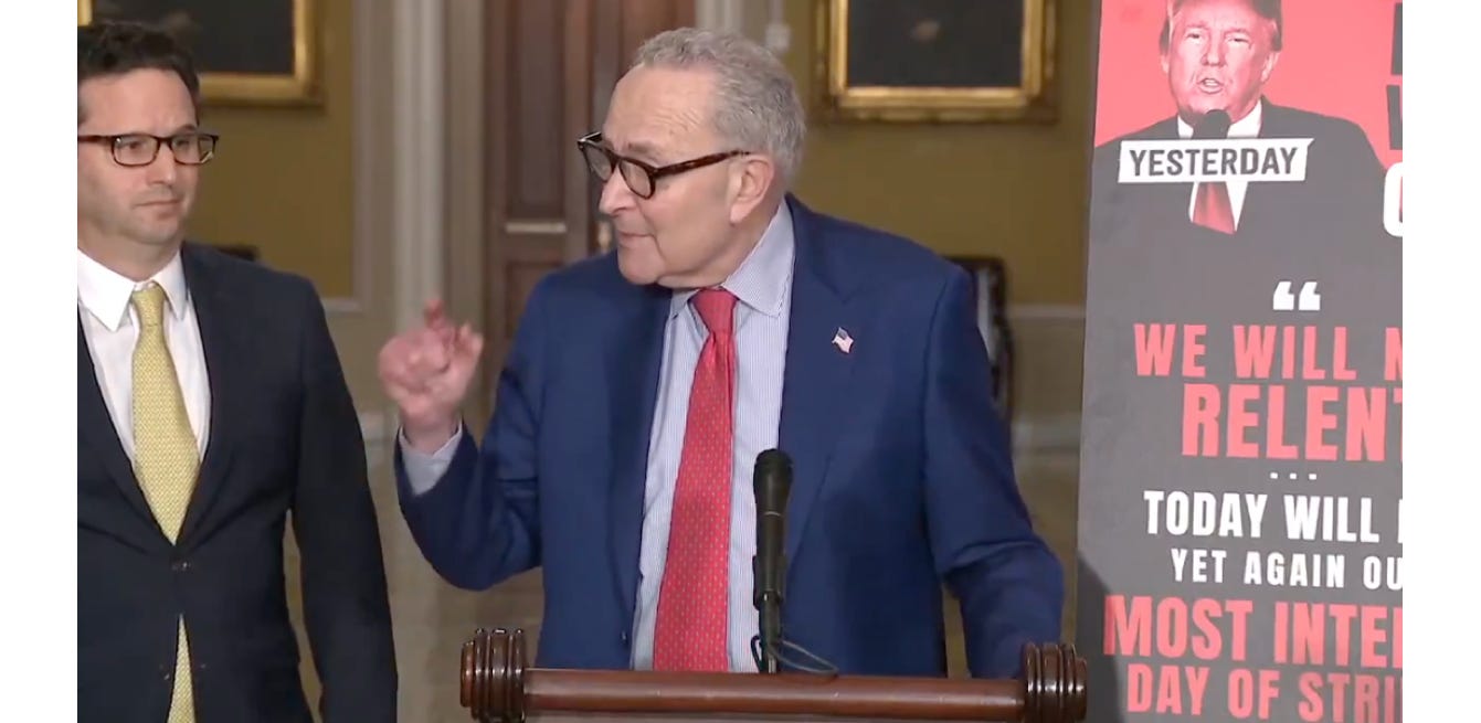 The idea of making Democrats debate the merits is so tantalizing. It’s going to be great. An example was provided this week when Minority Leader Chuck Schumer (D-NY) gave a little press presentation. With his characteristic poise and composure, Chuck moderately explained that the SAVE Act was an “outrage!” that would “allow ICE to kick tens of billions of people off the rolls.” That’s not a typo. Chuck said tens of billions.