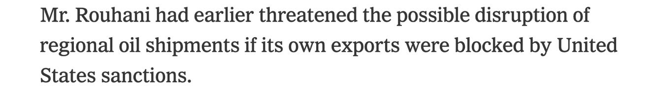 As recently as July, 2018, during Trump 1.0, the President mean-tweeted after Iranian President Hassan Rouhani threatened to close the Strait and disrupt oil prices. Trump said, “NEVER, EVER THREATEN THE UNITED STATES AGAIN OR YOU WILL SUFFER CONSEQUENCES THE LIKES OF WHICH FEW THROUGHOUT HISTORY HAVE EVER SUFFERED BEFORE.” (His all-caps.)