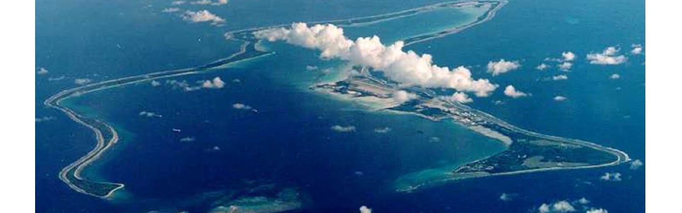 Colorfully named Diego Garcia is a remote, boomerang‑shaped coral atoll in the middle of nowhere in the central Indian Ocean. Part of the Chagos Archipelago, it pokes out of the water somewhere in the middle of the Indian Ocean— and most importantly, it hosts a major, highly strategic joint US‑UK military airbase.