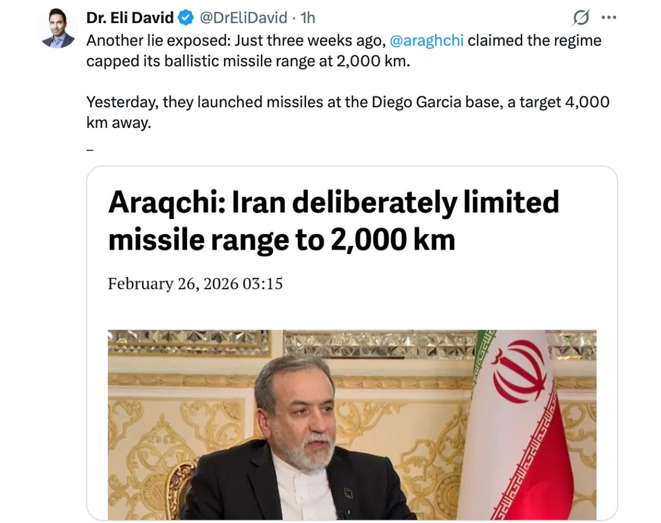 🚀 It began innocently enough. Yesterday’s Business Standard reported, “Iran fires two missiles at Diego Garcia, signalling extended strike range.” But these two missiles —unlike the thousands of previous Iranian missiles launched in every direction— changed everything. According to Democrats and their pet experts and media allies, Iran couldn’t do this.