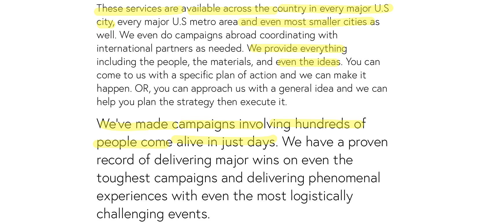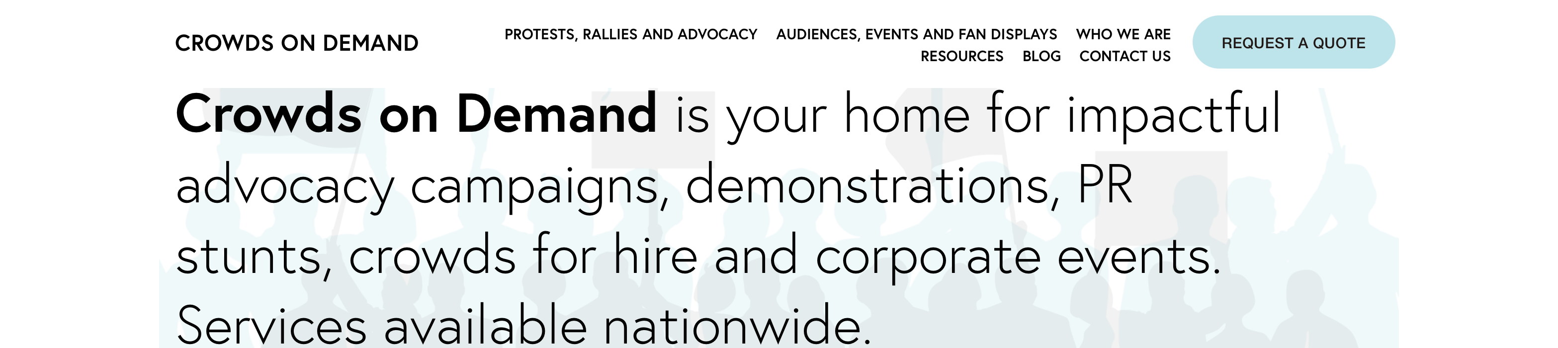 Crowds on Demand “delivers phenomenal experiences” including “even the most logistically challenging events.” Logistically challenging events? You mean, like CHAZ-style tent cities-on-the-green?