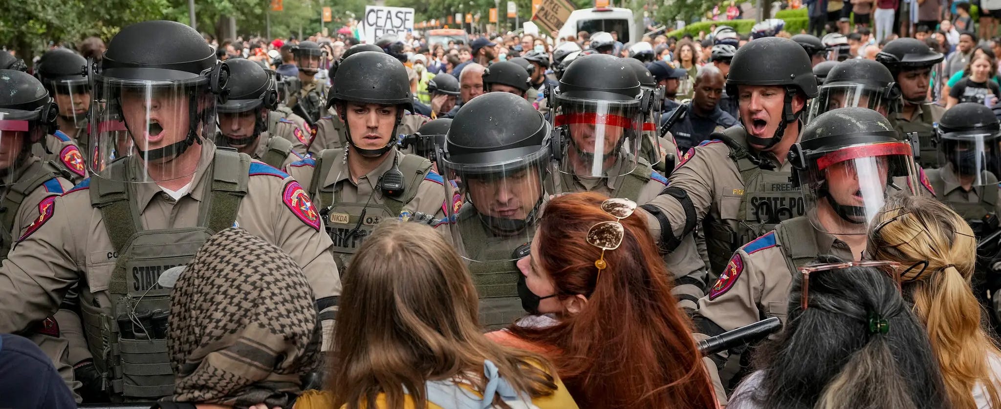 Not all states are rolling over like pleasant pussycats this time. Some learned their lessons last election season. Texas quickly cleared University of Austin’s campus, with jackbooted anti-protestors cracking a few skulls full of mush, and de-squatting the tent-bearing occupiers who were dashing toward the school’s commons area. At the University of Southern California in Los Angeles, the police moved in just before lunchtime yesterday to shove off an expanding encampment of about 100 protesters preparing to squat amidst the formerly-peaceful center of campus, which USC apparently required for other, non-protest purposes.