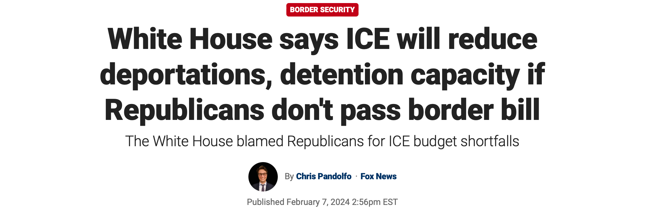 Democrats are running with the narrative that Republicans killed a perfectly edible bill that would have solved the border crisis once and for all, burritos for everybody, but racist Republicans would rather have an open border so they can complain about Biden, and TRUMP! and blah blah blah. Here’s an example of a completely ridiculous headline from the New Republic this morning to show you how the Democrats are spinning it: