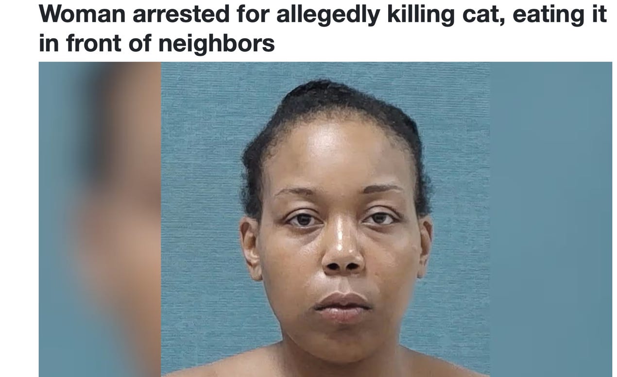 Investigators with the Canton Police Department in Stark County, Ohio, told reporters Telia Ferrell, 27, killed the cat by stomping on its head. She then went on to eat the poor animal “in a residential area in front of multiple people” at a housing complex on 13th Street.
