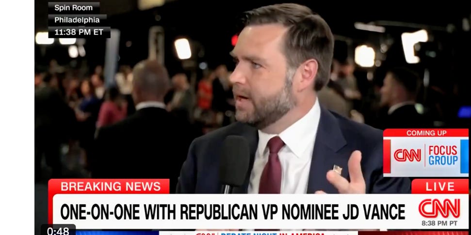 CLIP: CNN finds out as Senator Vance holds his own (1:43).