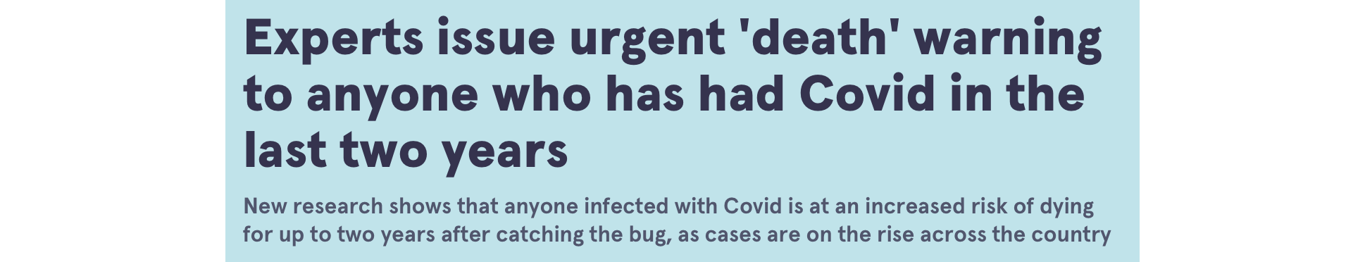 It’s a little stale but I thought it was worth mentioning since this study and the outrageous Mirror headline — Urgent Death Warning! — made the rounds on social media this week, supposedly to prove how deadly ‘long covid’ is or something.