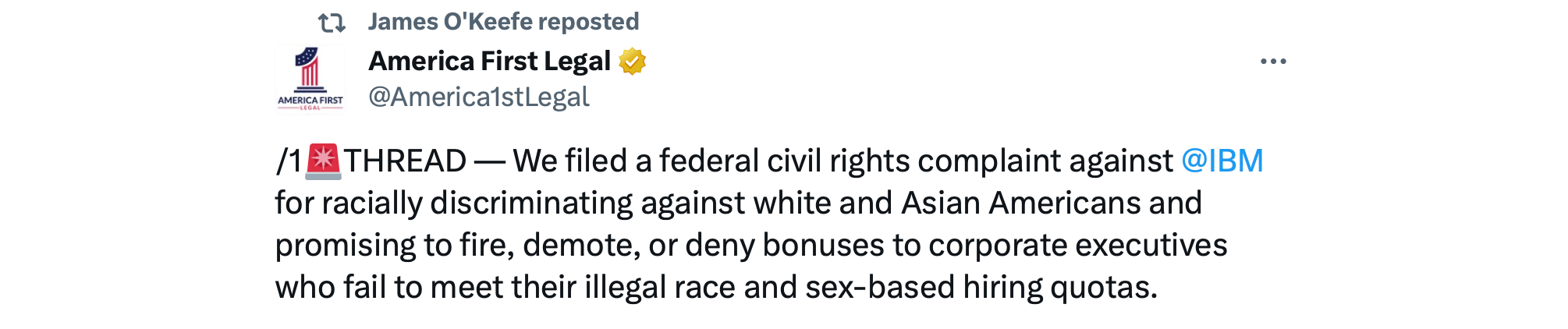 It wasn’t even 24 hours before the first lawsuit dropped , alleging a culture of systemic racism and illegal racist hiring quotas at IBM: