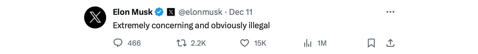 Elon Musk, who himself has repeatedly been sued by the government for hiring practices and should know, immediately chimed in, calling IBM’s policies “obviously illegal,” and massively boosting the exposé’s reach: