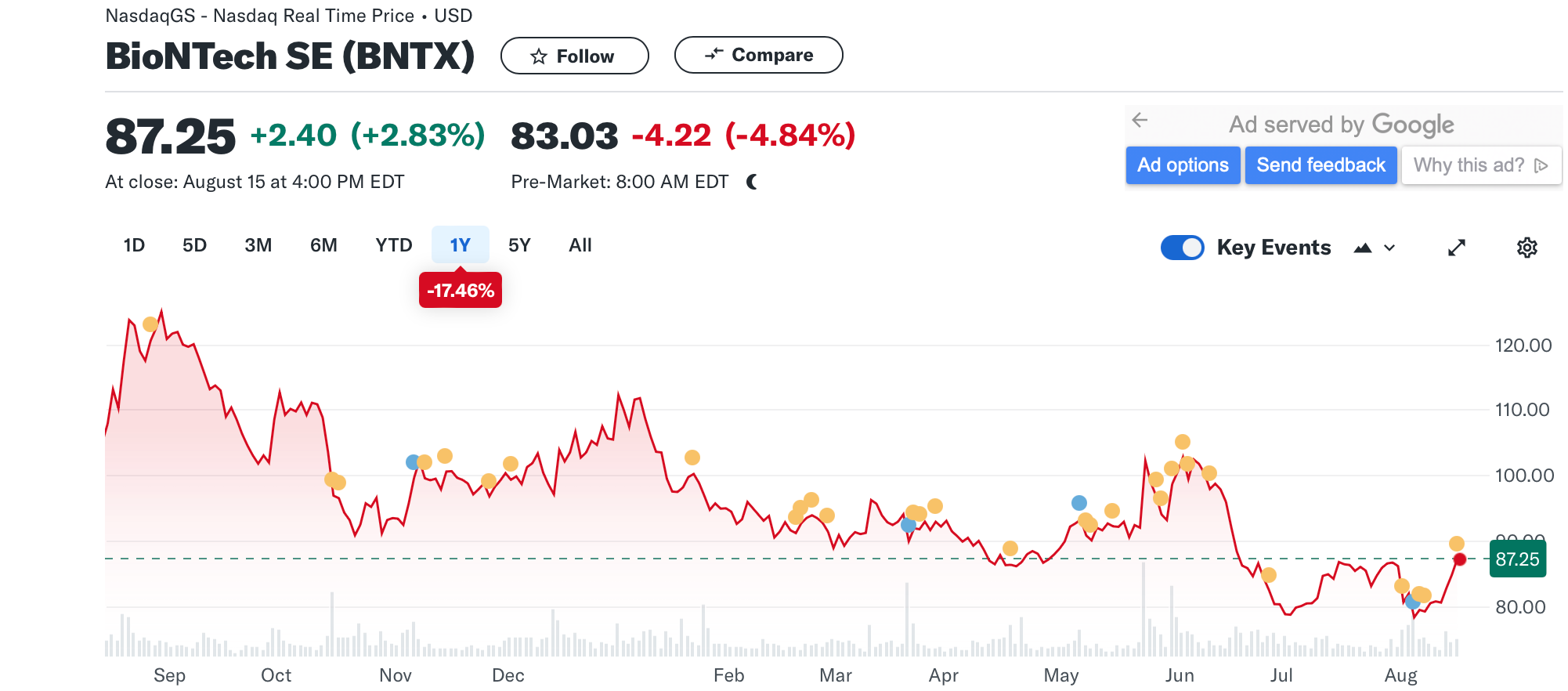 But don’t worry too much about BioNTech. They are sitting on cash reserves of $20 billion dollars, and have a new slew of safe and effective mRNA cancer drugs ‘in the pipeline.’ And it plans for a robust fourth quarter this year, since it partnered with Pfizer on a one-shot flu-covid combo jab. It’s almost there, but not quite. Whoopsies: