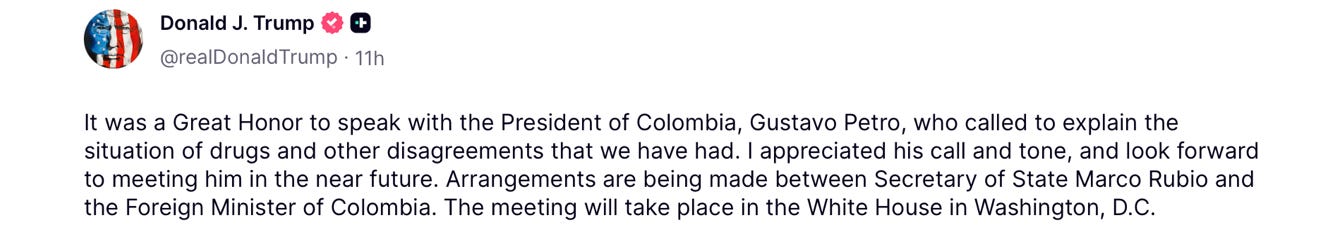 The revived Monroe Doctrine is crushing it. Already, other narco-states in the American hemisphere are paying exceedingly close attention to what just happened in Venezuela. They don’t want it to spread. Namely, President Trump reported yesterday that Colombia’s president isn’t just waiting around for the midnight caller; he phoned the White House with a whole new and more helpful tone: