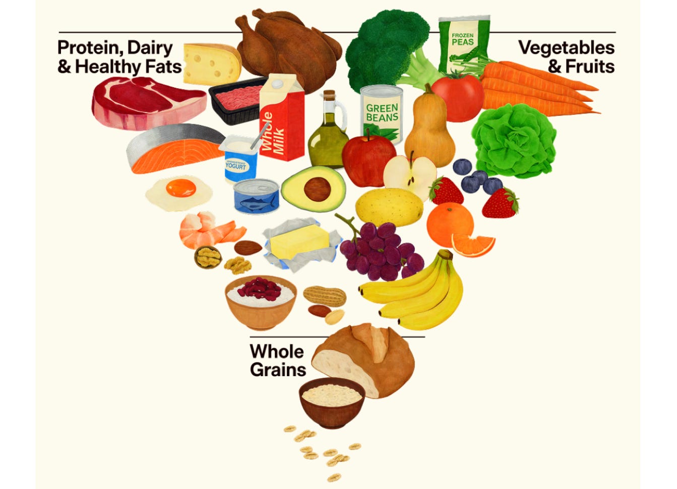 “My message is clear: Eat real food,” Secretary Kennedy said at a briefing rolling out the new guidelines. He might as well have said, eat more meat and fat. The new graphic “flips the food pyramid on its head, putting steak, cheese, and whole milk near the top,” the Times groaned. Sweets and grains now reside on the narrow bottom.
