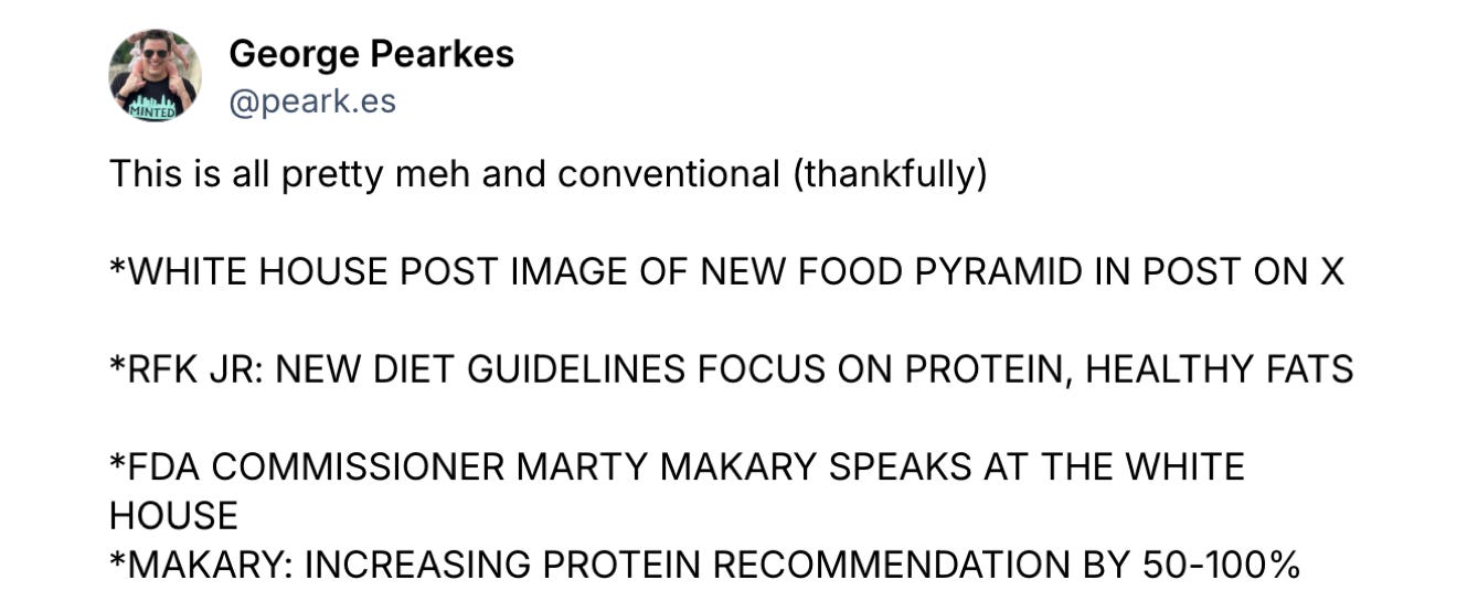 If Secretary Kennedy flipping over the food pyramid draws a collective meh, it can only be because no one believed in the old model anymore. You don’t mourn the collapse of a doctrine you already stopped following. The public reaction wasn’t acceptance— it was indifference.