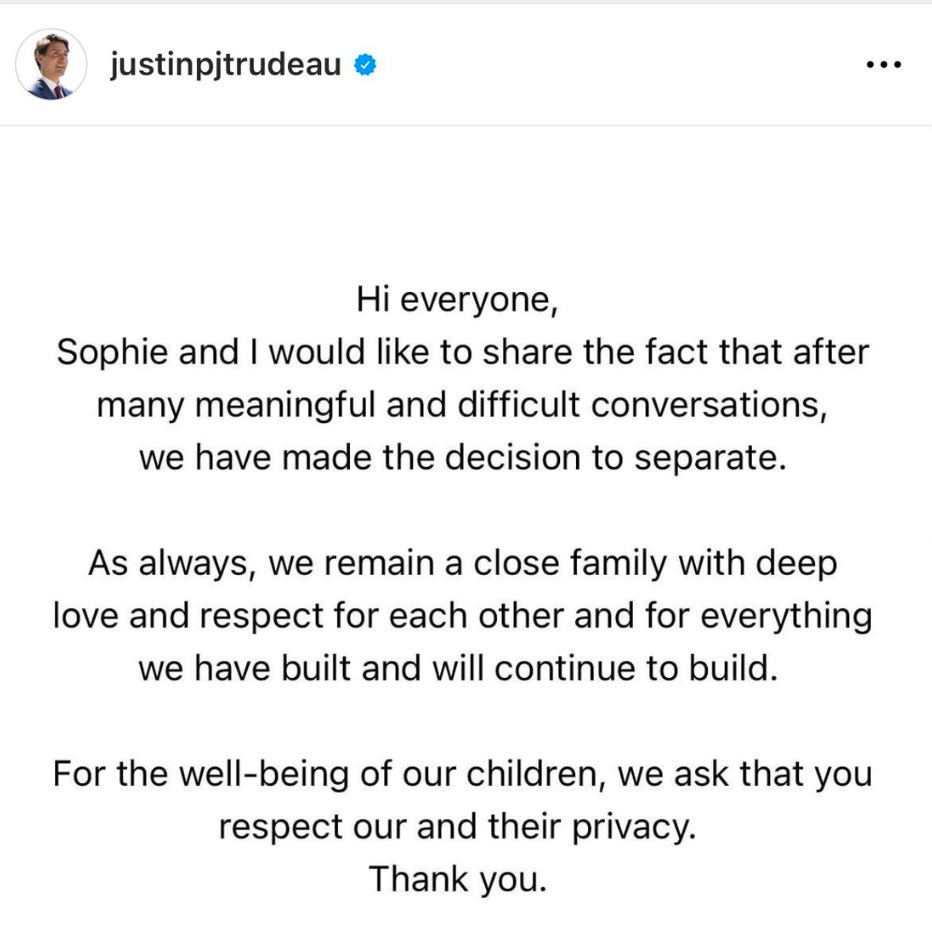The pair have three children: Xavier (15), Ella-Grace (14), and Hadrien (9). In a separate media release, the Prime Minister's Office (PMO) confirmed that the couple has "signed a legal separation agreement."