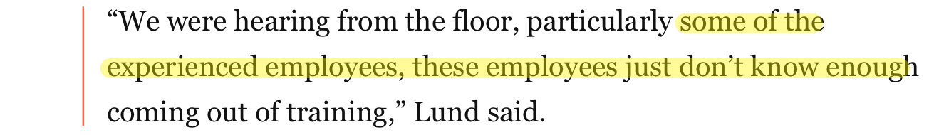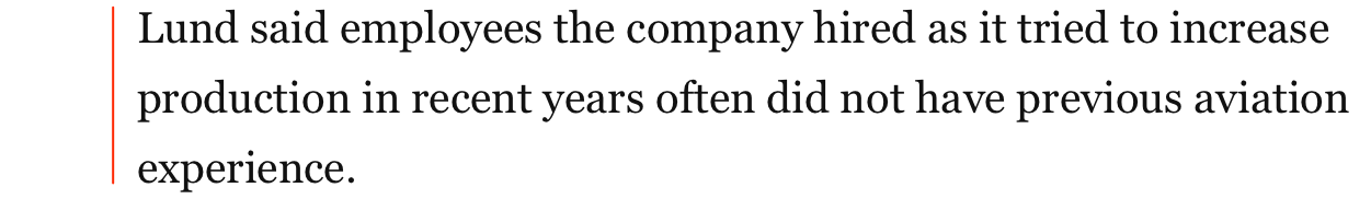 That second sentence about training was meant to lessen the sting, but actually made it worse. The not-reading problem is now in its second generation, with older employees training new workers in the wrong procedures. Which also proved that new Boeing workers aren’t required to read the instructions.