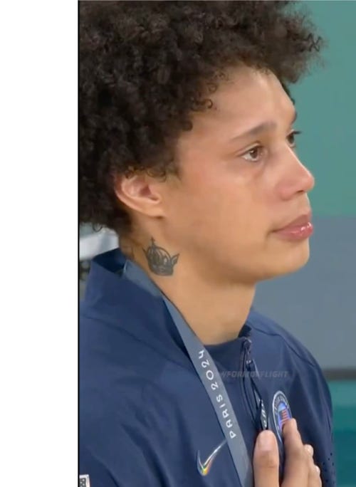 🔥🔥 Sometimes, God uses unexpected means to change people’s hearts. Over the weekend, recently repatriated celebrity basketball inmate and deep-talker Britney Griner —jailed in a Russian gulag on a drug charge and rescued by the Biden Administration— stood for the National Anthem.