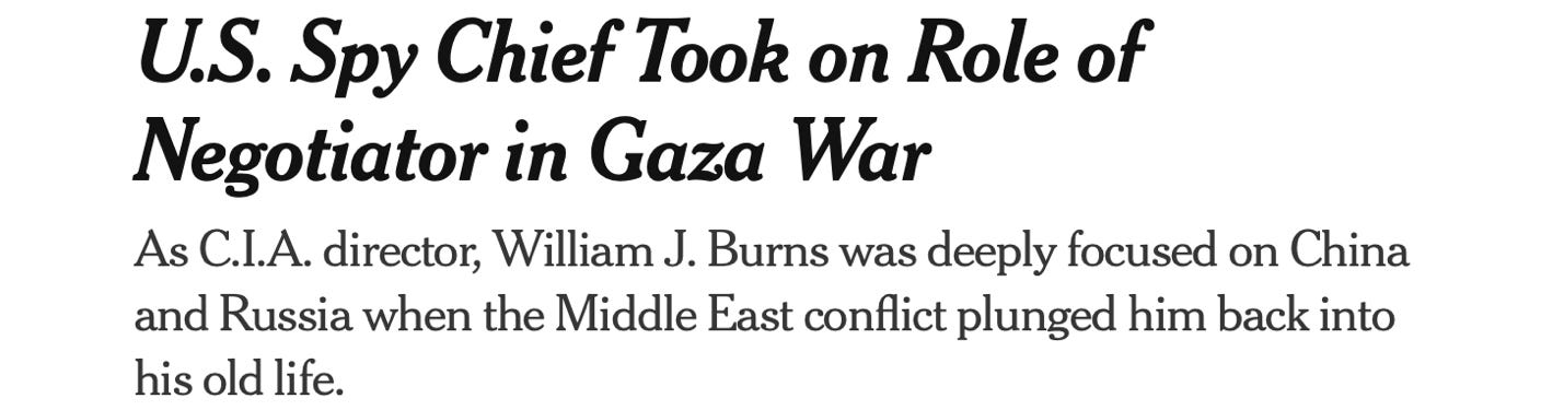 Now we much better understand one of the most puzzling elements of Biden’s late-term negotiations in the Middle East. The failed discussions over a Gazan ceasefire were being brokered by CIA —not the State Department— and nobody even seemed to think there was anything at all unusual about that.