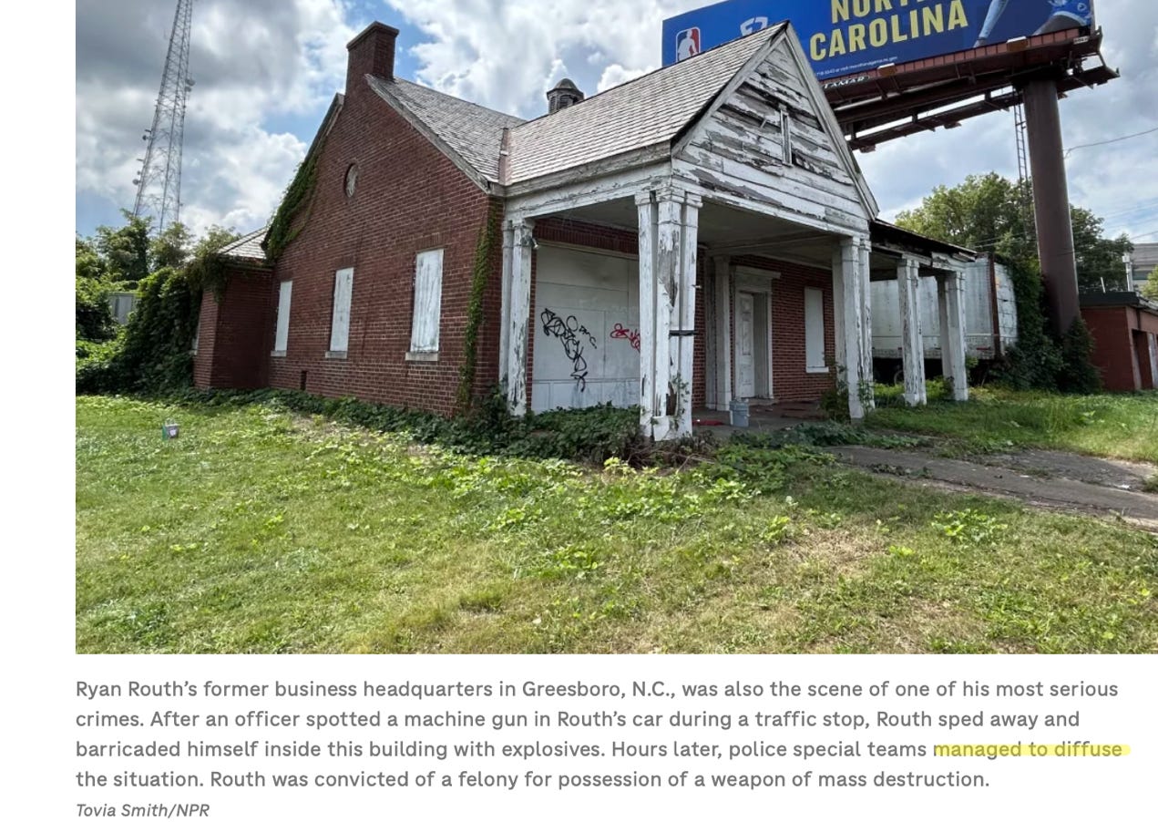 🔥🔥 NPR joined reporting on Trump shooter Ryan Routh’s bizarre backstory this morning in an article headlined, “In his hometown, Trump's alleged would-be assassin acted like he was 'above the law’.” It was a strange story for a several reasons.