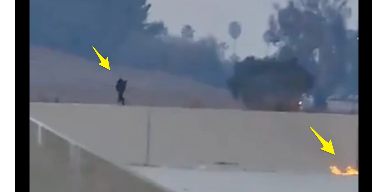 Social media’s grasping for explanations that fit the partially-known and war-fogged facts is our collective way of informally applying the res ipsa loquitur without even knowing the dialect. At this point, people are picking out unburned, blue-colored objects in photos and speculating about DEWs like in Hawaii. Other alert citizens are uploading videos allegedly showing arsonists at work: