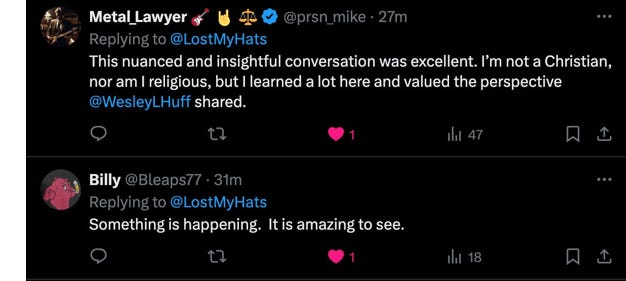 Rogan’s interview with Huff was remarkable not just for its subject matter but also for its effect. A surprising number of secular folks reviewed the show well, like this gentleman, for example: