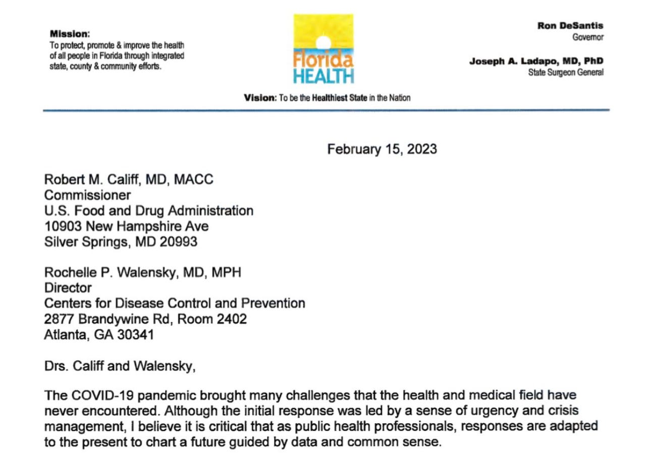Here’s a link to the Health Advisory letter on Florida Health’s website: [Health Alert on mRNA COVID-19 Vaccine Safety | Florida Department of Health](https://www.floridahealth.gov/newsroom/2023/02/20230215-updated-health-alert.pr.html)