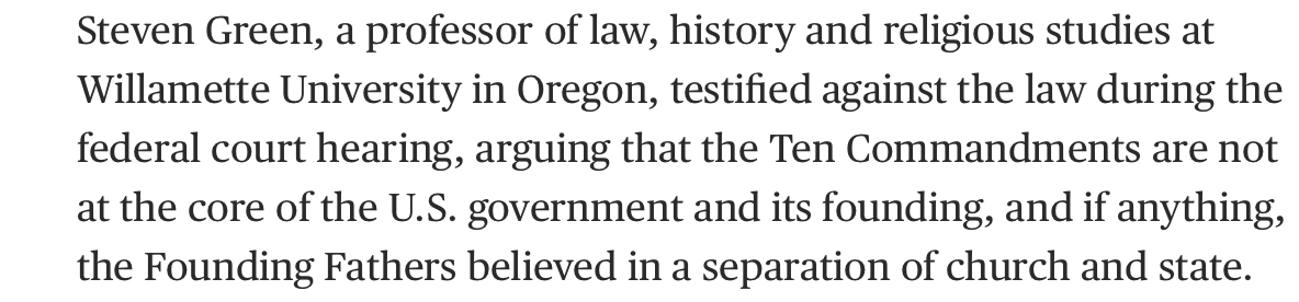 U.S. District Judge John deGravelles, a 2014 Obama appointee, held the new Louisiana law was a “facially unconstitutional” violation of the First Amendment’s establishment clause. The plaintiff parents who objected had to go all the way to Salem, Oregon to scare up an expert willing to testify that the Ten Commandments has no place in American history: