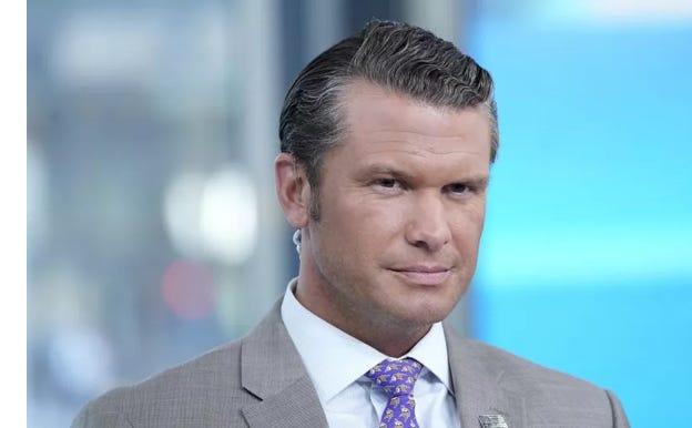 Secretary of Defense: Pete Hegseth, Fox News host, Army veteran, author of “The War on Warriors,” who was banned from Biden’s inauguration as an “extremist”.