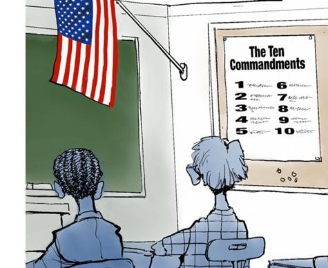 🔥🔥 NBC ran an entirely predictable story yesterday headlined, “Federal judge blocks Louisiana’s Ten Commandments law in public schools.” I reported the story earlier this year after Lousiana’s terrific Governor Jeff Landry signed a provocative bill requiring a poster of the Ten Commandments be displayed in all public school classrooms as a historical document, and Lousiana liberals started coughing up crawdads. What about separation of Church and State??, they cried. And they sued.