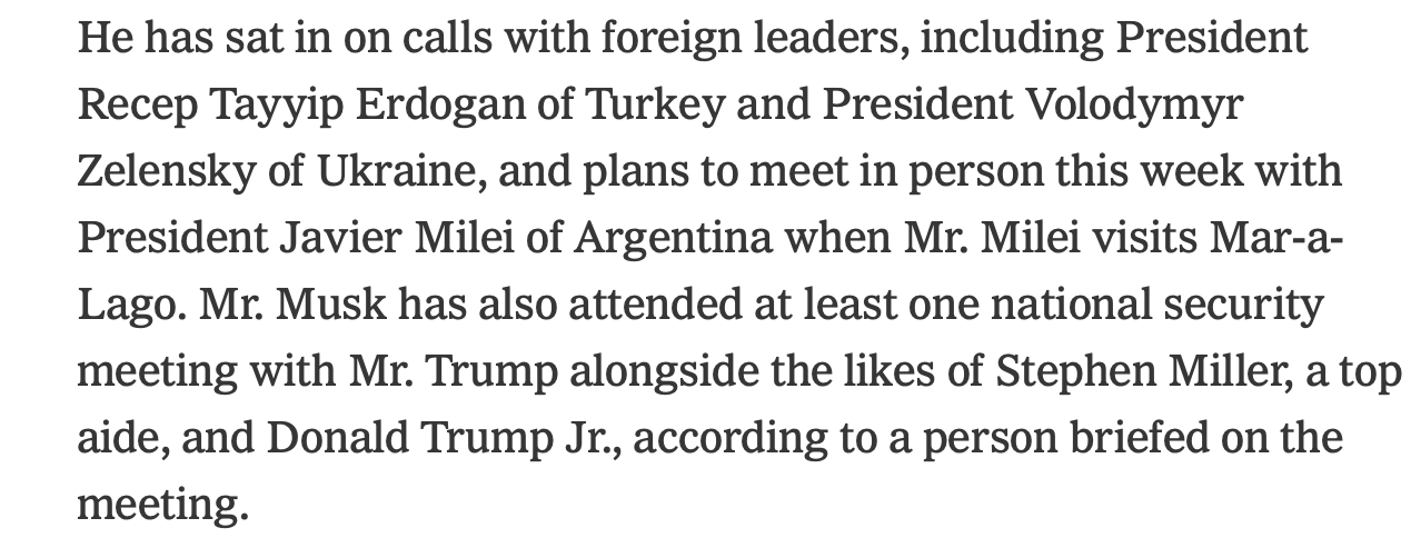 The Times was right to worry. The world’s most successful entrepreneur, who has personal experience with being on the wrong end of government weaponization, appears to have become an integral part of Trump’s transition team: