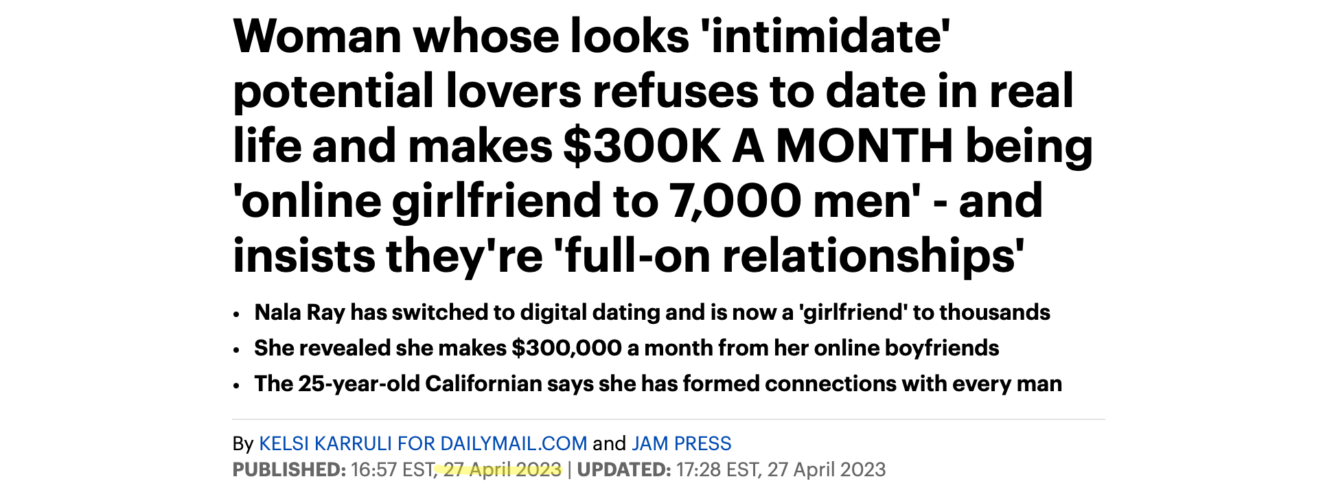 Before that, about a year ago (April 2023), the Daily Mail ran a story about Ms. Ray — a story that was oddly repeated over and over in various forms on all the usual corporate media platforms — with this salacious headline: