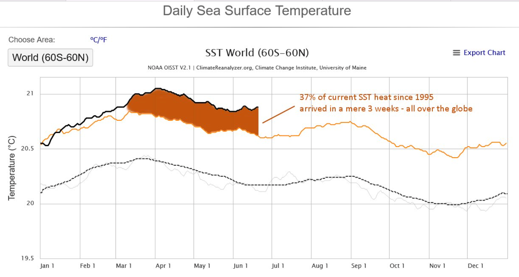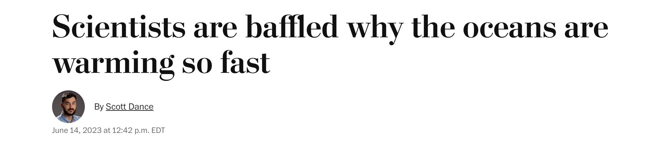 There’s no doubt we’re in for something new. The heating, which seems to have been happening for decades, is accelerating far beyond anything that can be explained by manmade carbon dioxide. And the first sacred cow to be slain will almost certainly be the “climate change” movement. It’s not carbon. It’s the ocean.