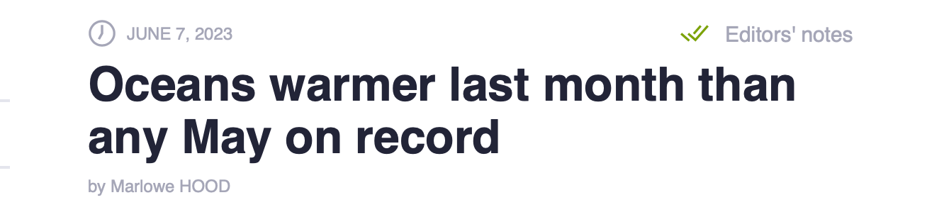 The op-ed’s author explained “in line with historical seasonal patterns, [May global ocean temperatures] began to slightly decline — only to reverse course in the middle of the month, heating up to about three quarters of a degree above the 1982-2011 mean. That represent[s]… the largest global ocean temperature anomaly on record.”