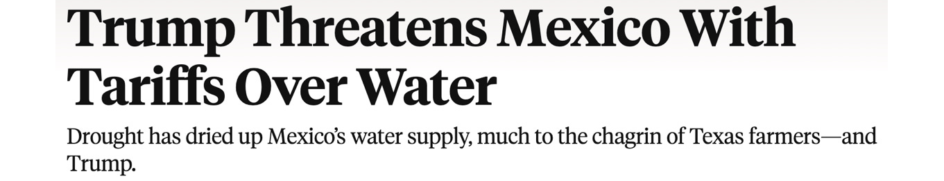 🔥 Next, President Trump turned yesterday to the water wars. He vowed to impose additional tariffs on Mexico unless it complies with its treaties, like it promised.