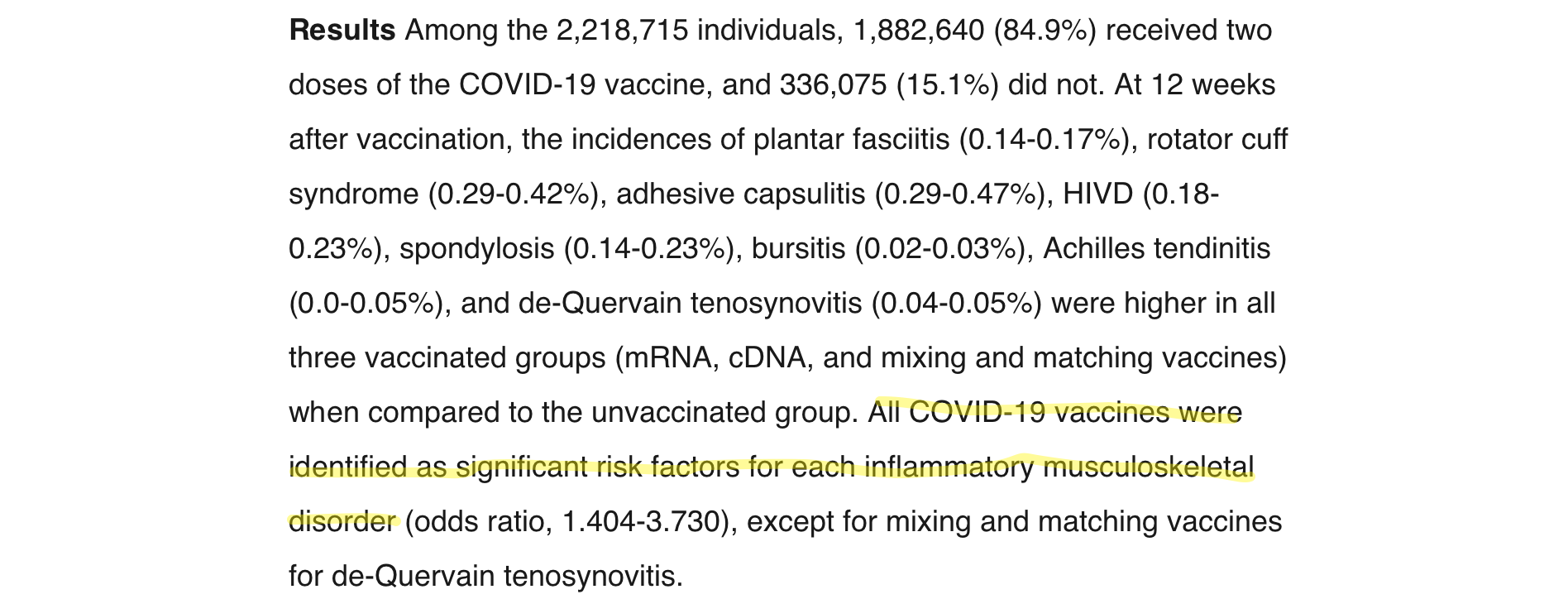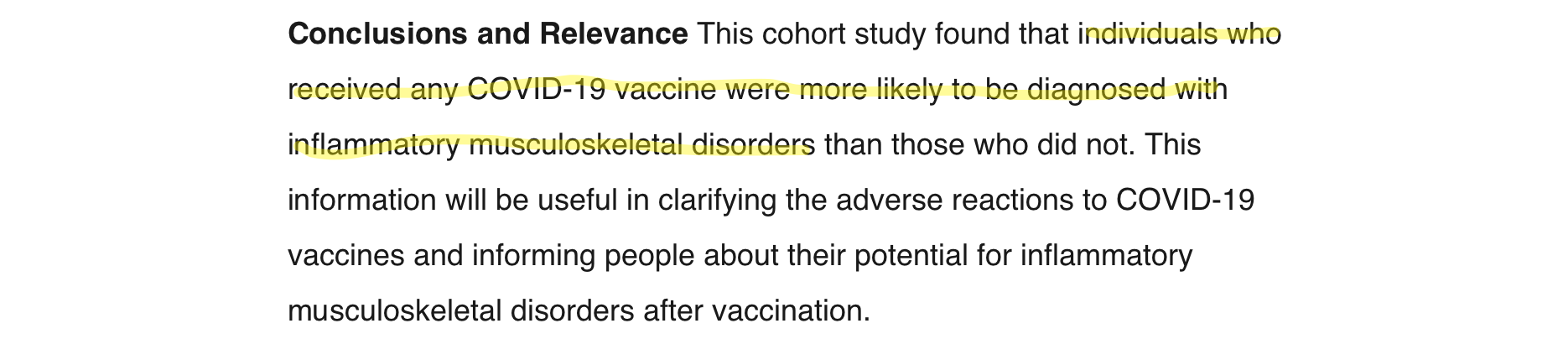 🔬 STUDY #1: On November 22nd, four Korean scientists published a preprint titled, “Correlation between COVID-19 vaccination and inflammatory musculoskeletal disorders.”