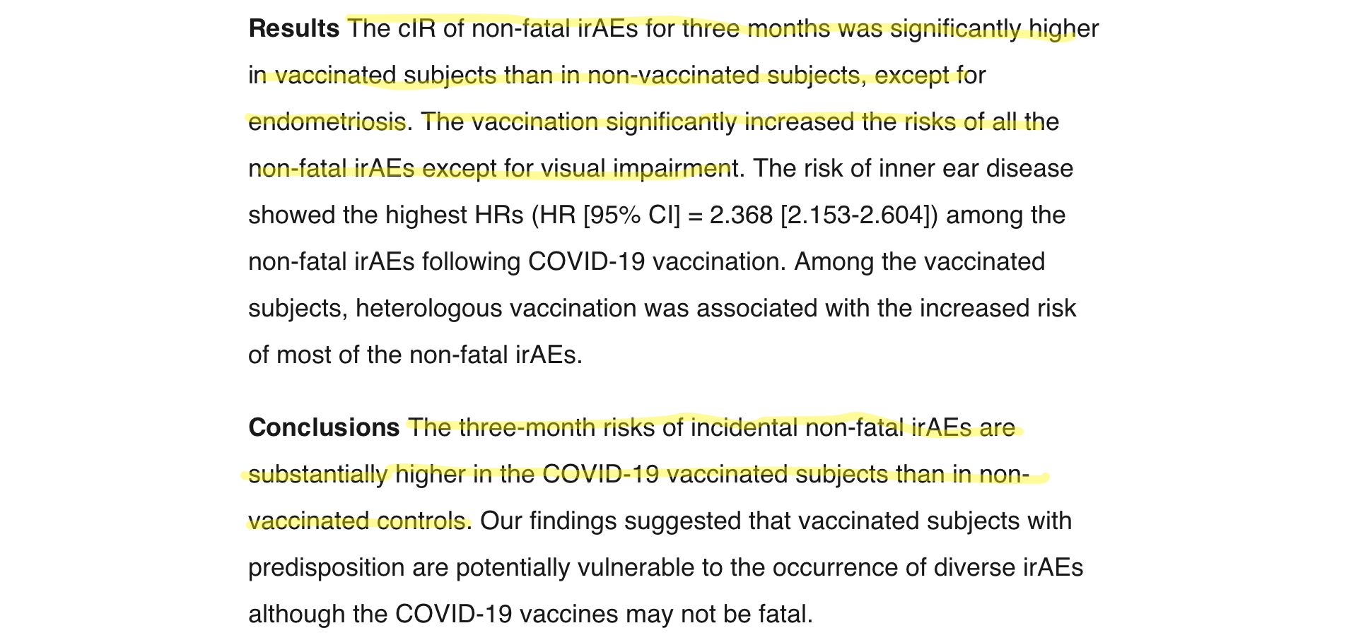 🔬 STUDY #3: Finally, the same core group of scientists published their third preprint on the same data analysis, their “kitchen sink” version, titled “The spectrum of non-fatal immune-related adverse events following COVID-19 vaccination: The population-based cohort study in Seoul, South Korea.”