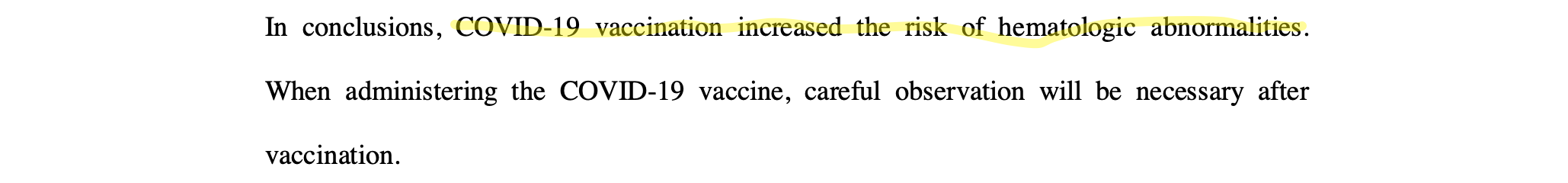 💉 STUDY #2: Also on November 22nd, five Korean scientists (including several from the prior study) published a second preprint titled, “Hematologic abnormalities after COVID-19 vaccination: A large Korean population-based cohort study.”