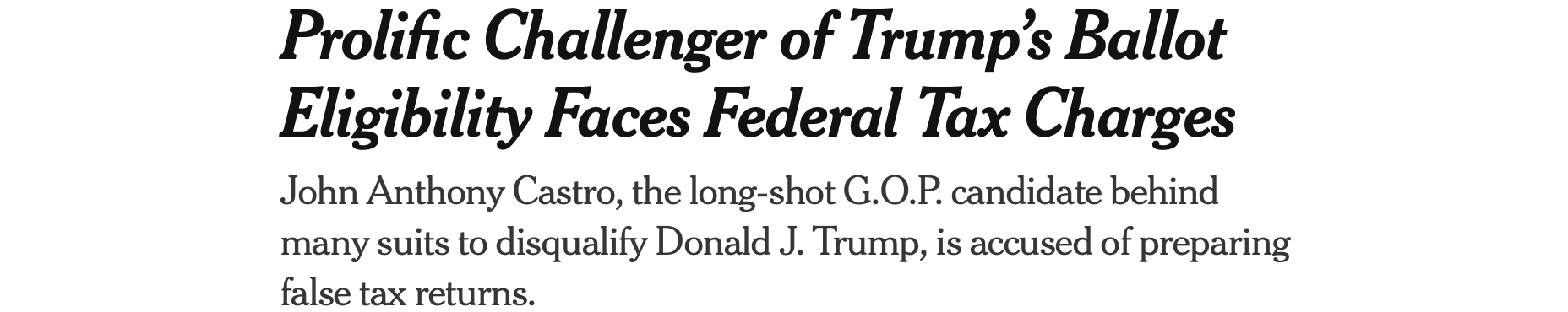 Last week, while arguing his most-recent lawsuit to keep Trump off the presidential ballot, Castro suddenly got some bad news. Apparently, all his presidential political activity garnered him some unwanted attention from the IRS. While Castro may not be as dumb as top U.S. military and NATO war planners, he’s not any gift to the tax preparing business, either.
