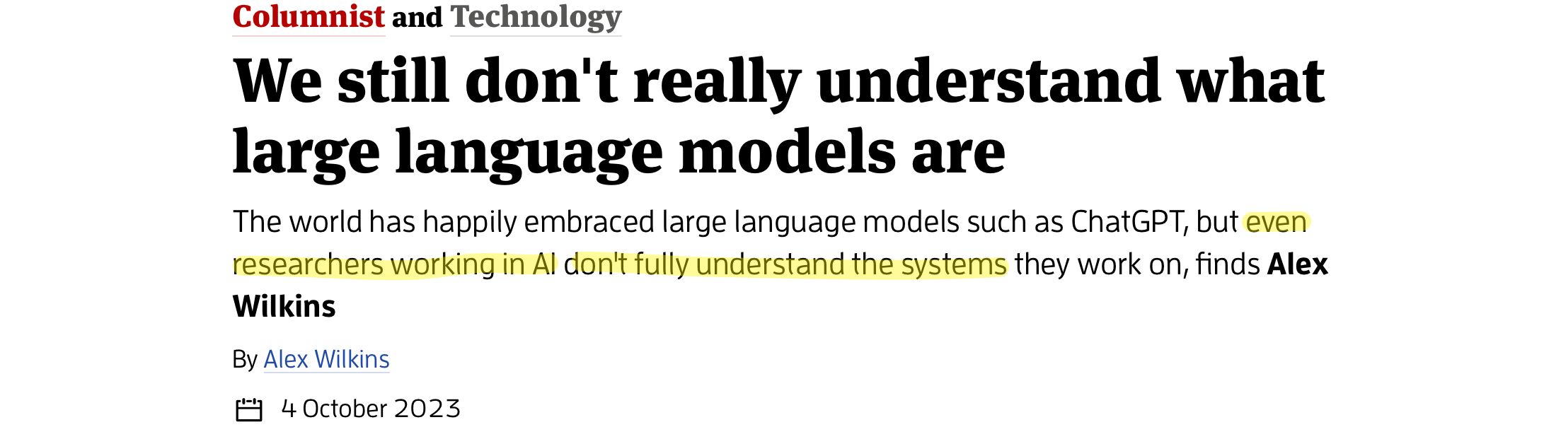 But paradoxically, the sudden appearance of this new technology is also even more mysterious than it seems, since all artificial intelligence-based technology sprouts from a common large-language model that even the developers admit they do not fully understand: