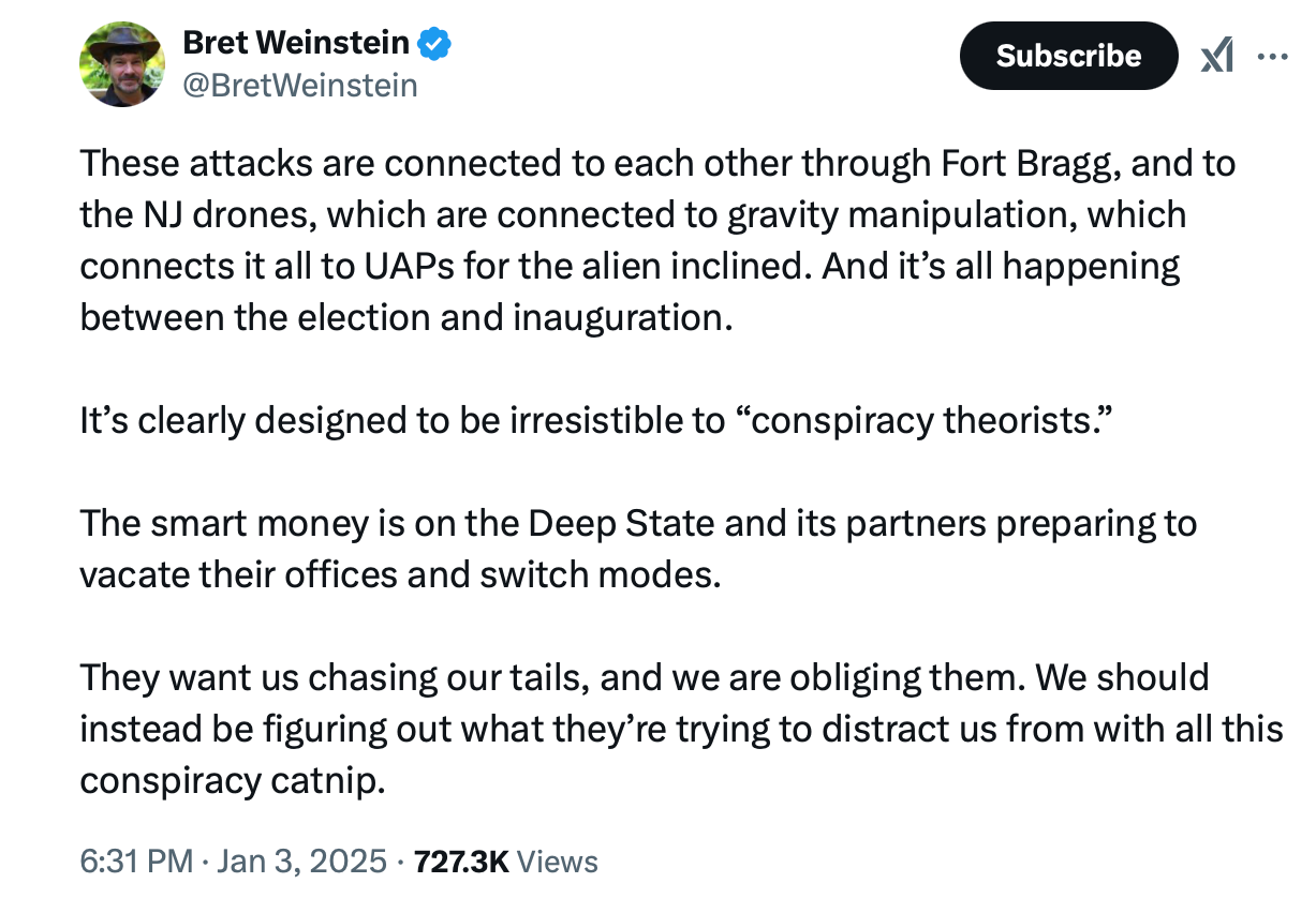 For example, Intellectual Dark Web influencer Bret Weinstein dismissively called it “Conspiracy Catnip:”