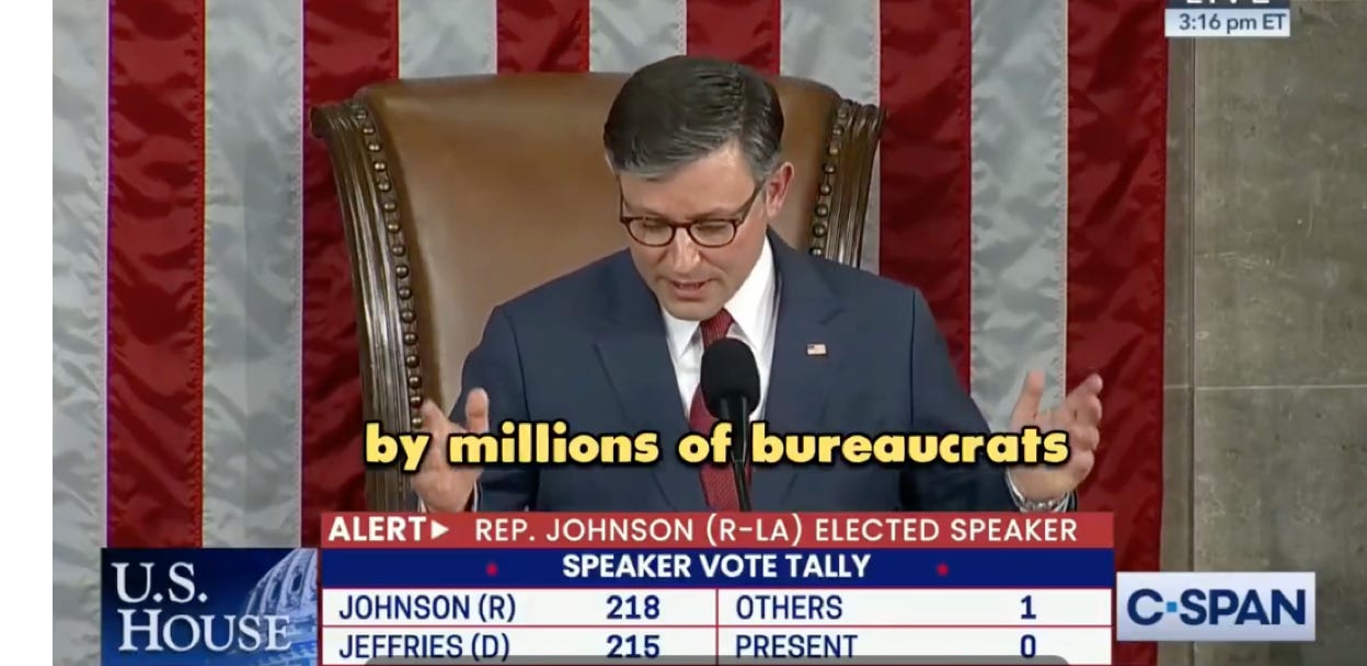 That —the way the court curtailed the FCC’s authority— was especially encouraging. It suggests the courts are aligned with President Trump and with the Republicans in Congress, as Speaker Johnson explained in the video I linked above. All three branches are aimed at eviscerating the administrative state. It truly seems more likely than ever that Trump could actually achieve “draining the swamp,” and fulfill his original and most important promise.