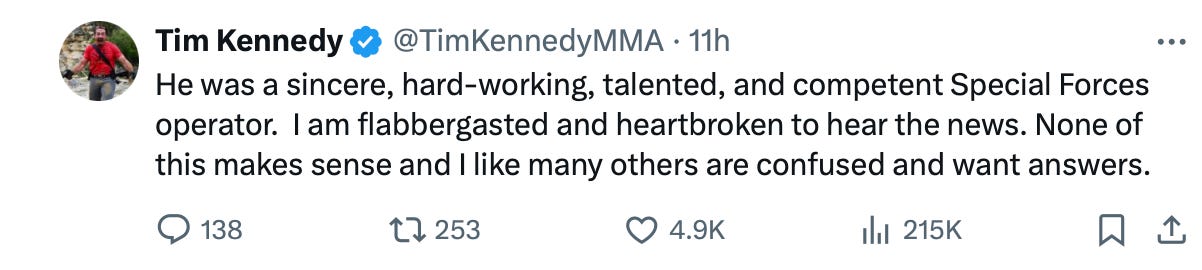 First, the deceased Cybertruck driver, allegedly Green Beret Matt Livelsberger, had acting experience. The New York Post (and only the Post, oddly) covered the story under the headline, “MMA star Tim Kennedy who competed with Cybertruck bomber Matthew Livelsberger on ‘History Channel’ reality show speaks out over explosion.”