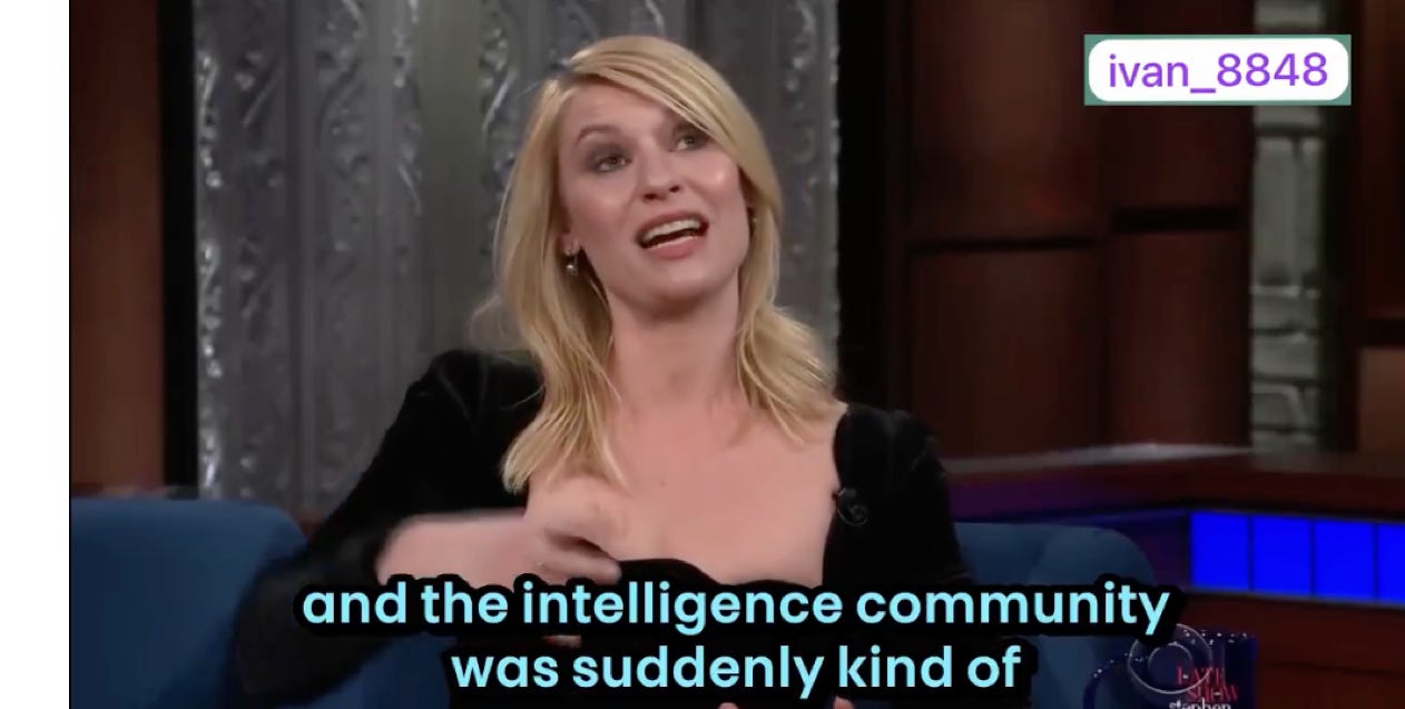 CLIP: Claire Danes dishes the deep state dirt to Colbert, who panics (1:16).