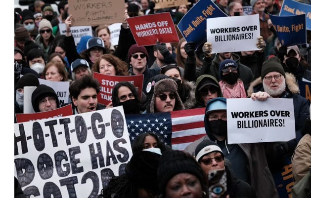 By moving quickly, DOGE got a terrific head start. But the forces of darkness are getting their sneakers on, and now we are entering the “protests” phase, so be prepared. Yesterday, the AP ran a story headlined, “Protesters in cities across the US rally against Trump's policies, Project 2025 and Elon Musk.”