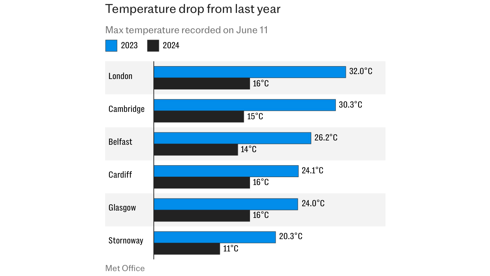 🔥🔥 In case you were wondering, since the temperature hasn’t been getting much coverage this summer, overall June has been cooler than last year. The Telegraph ran a muted story yesterday headlined, “June temperatures at half the level of this time last year.” They were hoping for something much hotter.