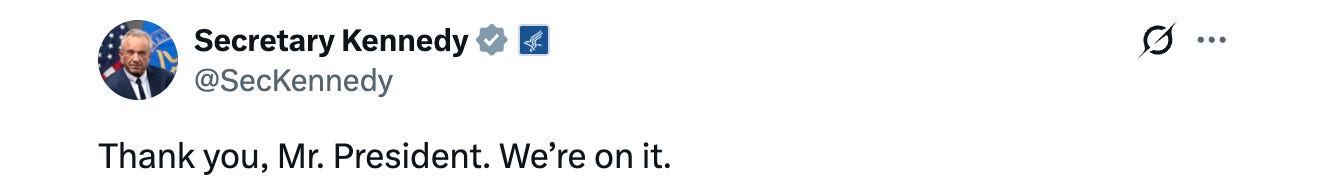 Secretary Kennedy immediately responded too, confirming, “we’re on it:”